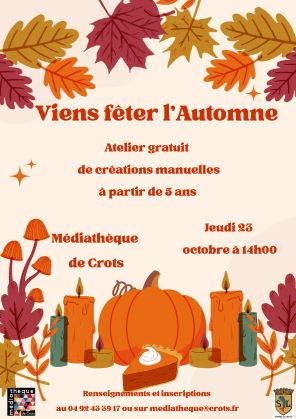 Atelier de création manuelle sur le thème de l'automne ouvert à tous à partir de 5 ans.