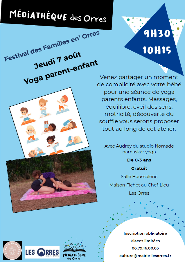 Venez partager un moment de complicité avec votre bébé pour une séance de yoga parents enfants. Massages, équilibre, éveil des sens, motricité, découverte du souffle vous serons proposés tout au long de cet atelier.
